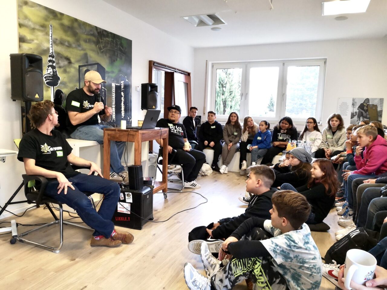 Am Dienstag, dem 15.11.2022, machten wir unseren Klassenausflug nach Mannheim in den Langlachweg 11c. Der Rap-Workshop wurde von WhoAmI veranstaltet. Als wir angekommen waren, suchten wir erstmal nach dem Haus. Als wir das Haus gefunden hatten, haben uns die Leiter empfangen. Wir versammelten uns in einem Raum und die Leiter erklärten uns alles. Als Themen für unseren Rap sammelten wir Sitzordnung, Fake Friends, Social Media, Angst vor Klassenarbeiten, Regelheft und Schulangst. Wir wurden in sechs Gruppen aufgeteilt und jeden Gruppe bearbeitete ein Thema. Danach wurden wir nacheinander in das Tonstudio geholt. Später aßen wir Pizza und einer der Leiter erzählte uns noch ein paar Geschichten. Nach diesem tollen Tag fuhren wir mit dem Zug wieder zurück nach Hockenheim.