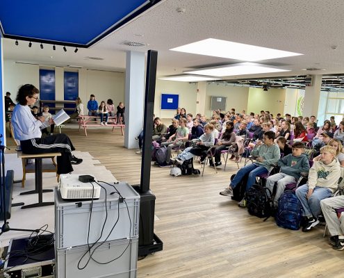 Antje Herden, die bereits viele preisgekrönte Kinder- und Jugendbücher geschrieben hat, schaffte es sofort die jungen Zuhörerinnen und Zuhörer mit ihrer lebendigen und humorvollen Art zu begeistern. Die Geschichte rund um die drei cleveren Hauptfiguren, die sich plötzlich mit einer sehr ungewöhnlichen Mission konfrontiert sehen, sorgte für Staunen, Lachen – und jede Menge Fragen.