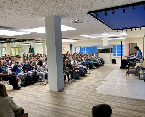 Zum Schluss gab es noch Autogramme und die Gelegenheit, Bücher signieren zu lassen – für viele ein echtes Highlight und eine schöne Erinnerung an ihre erste Lesung an ihrer neuen Schule.
