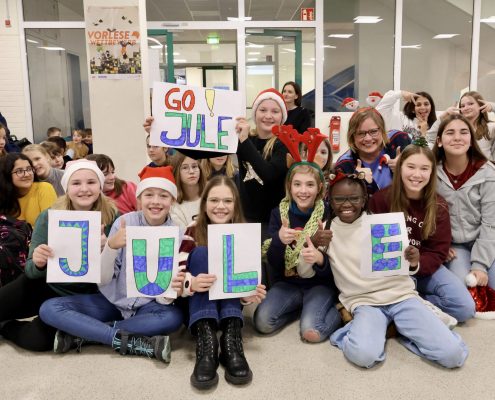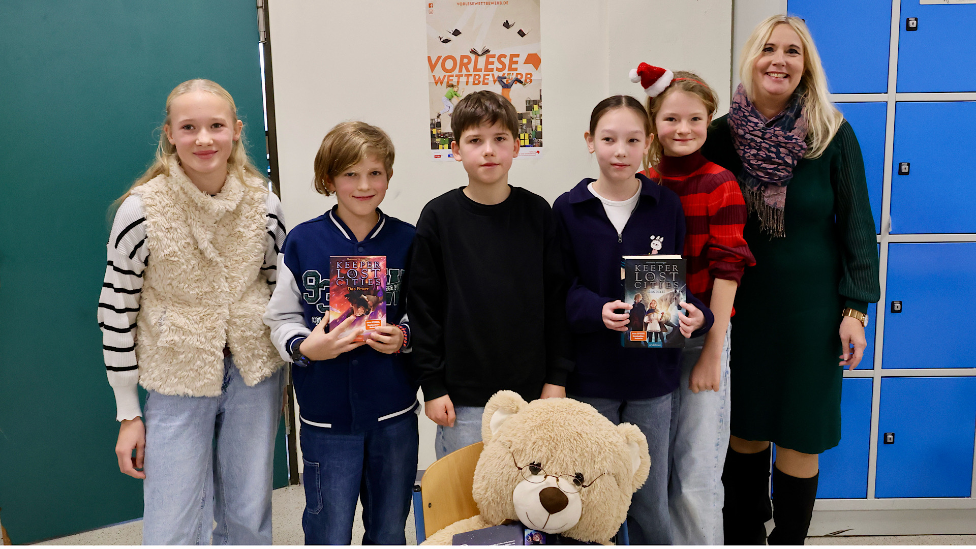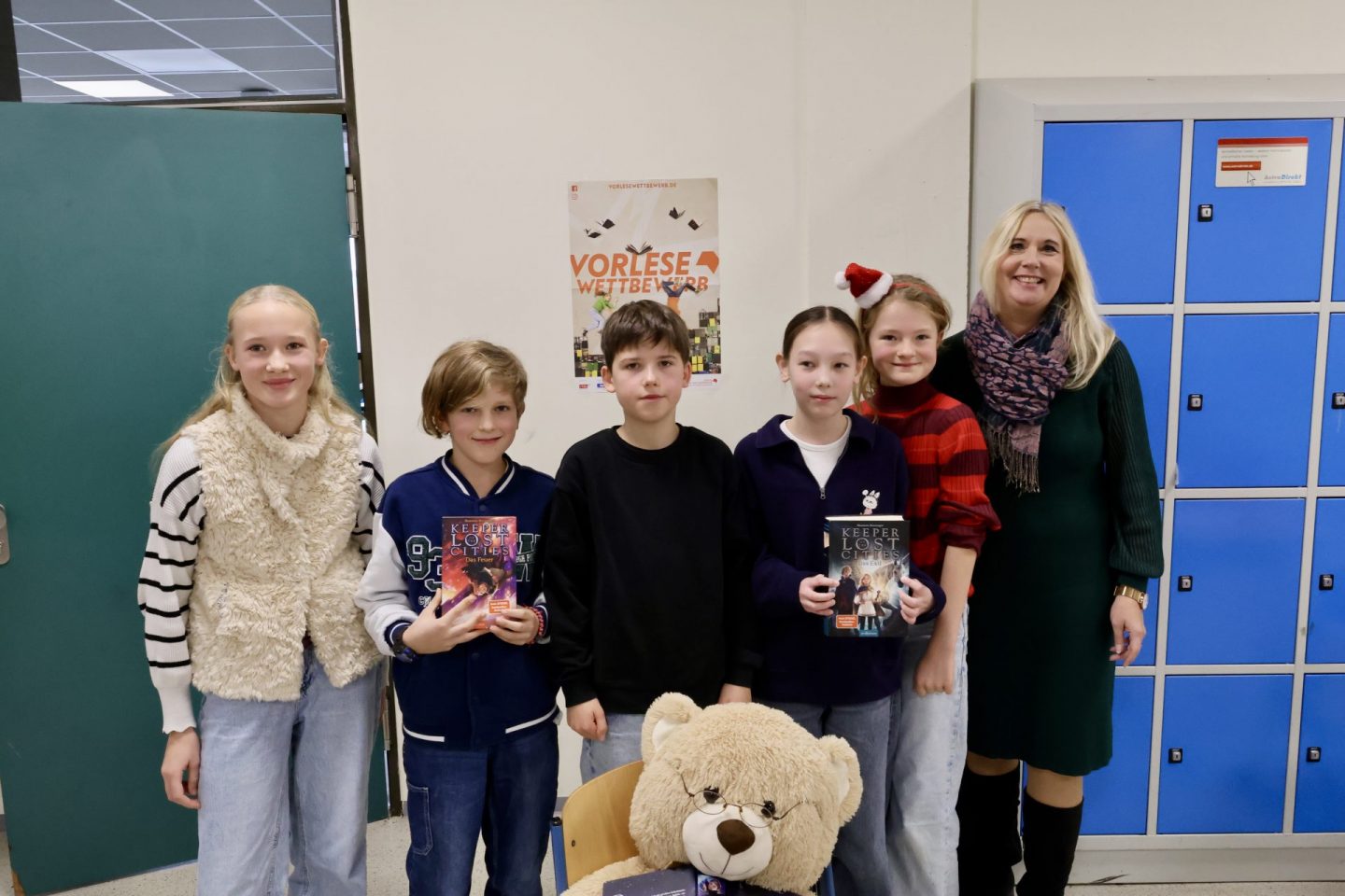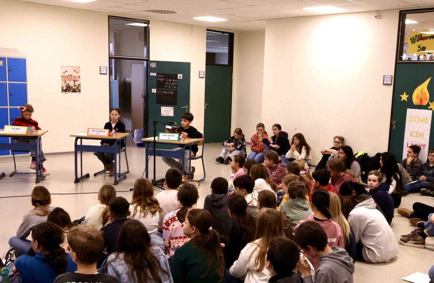 Am 5.12.2025 fand am CFG der von allen Beteiligten mit Spannung erwartete Vorlesewettbewerb der 6. Klassen statt. Fast 160 Schülerinnen und Schüler versammelten sich im oberen Foyer, um ihren jeweiligen Klassensieger zu unterstützen. Die Vorentscheide in den Klassen hatten Ella Geist (6a), Ben Schwarze (6b), Jule Heger (6c), Ailin Turuspekova(6d) und Milan Schneider (6e) gewonnen.