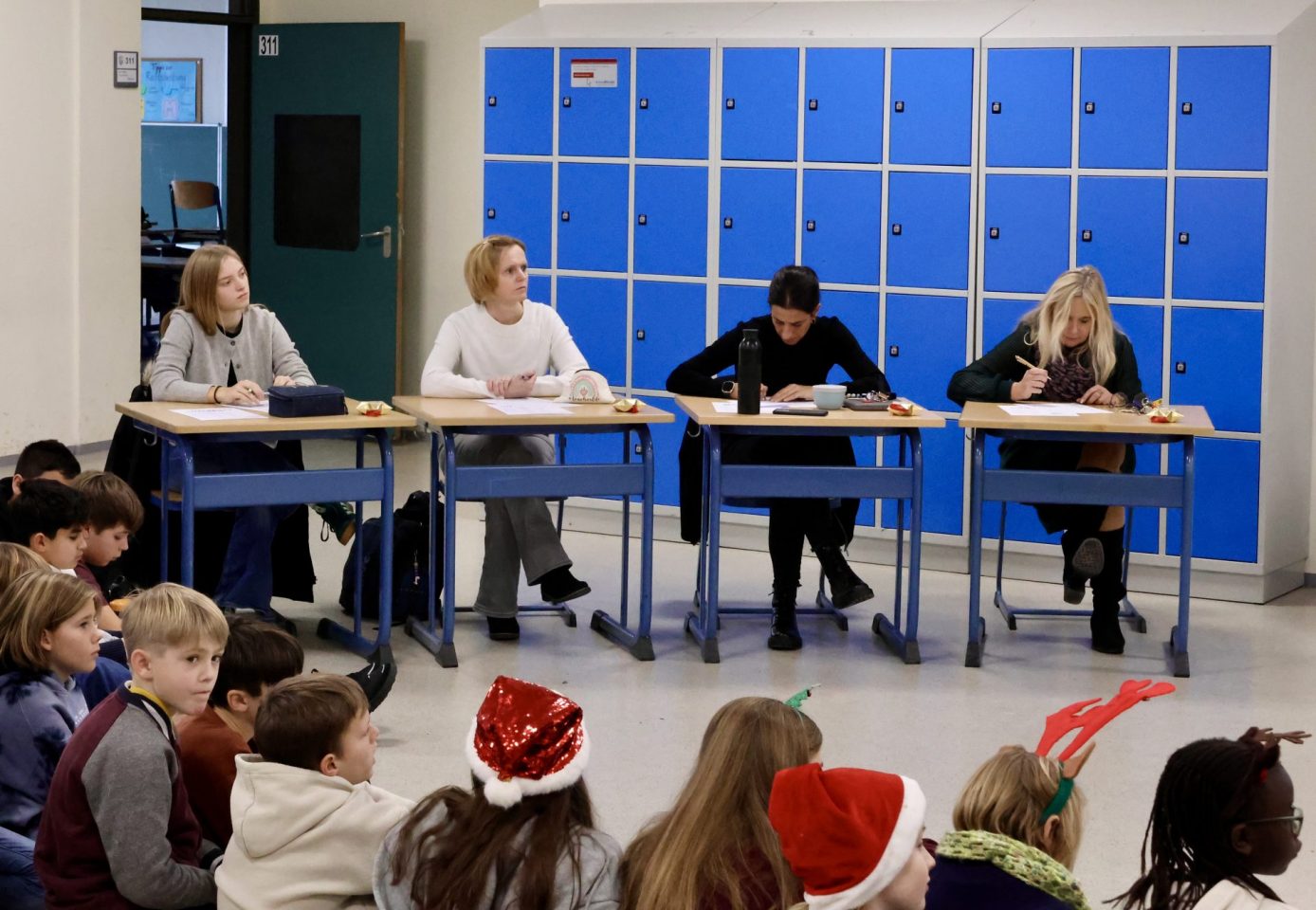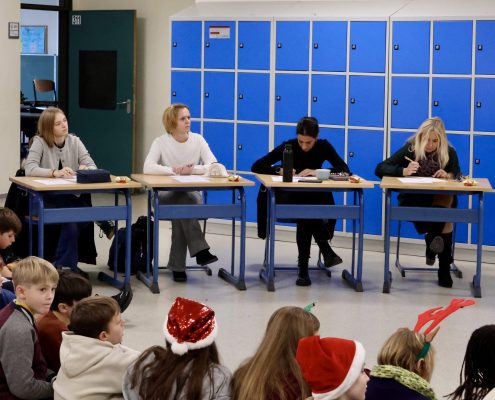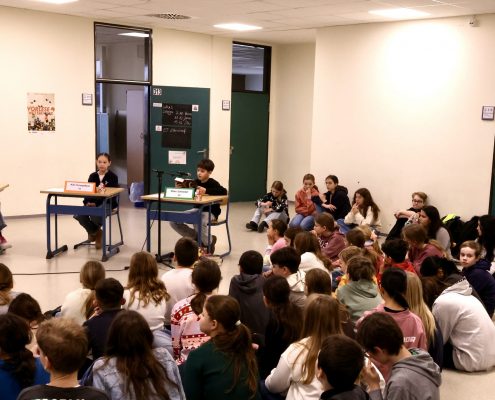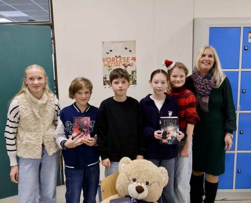 Die Jury, bestehend aus Schulleiterin Frau Kaiser, den Deutschlehrerinnen Frau DelMul und Frau Masuth sowie der Schülerin Cara Kemptner, die in einem vergangenen Wettbewerb Landessiegerin wurde, freute sich über das insgesamt sehr hohe Niveau der Beiträge und die große Kompetenz der Lesenden, die in diesem Jahr zu erkennen waren.