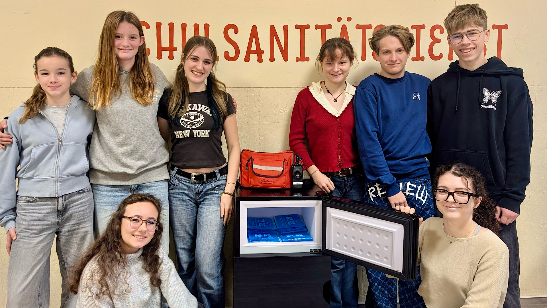 Um dieser Problematik entgegenzuwirken, hat sich die SMV bereit erklärt, die Finanzierung eines Kühlschranks für den Schulsanitätsdienst zu übernehmen. Künftig stehen unseren Sanitäterinnen und Sanitätern wiederverwendbare Kühlpacks zur Verfügung, die dauerhaft im Kühlschrank gelagert werden können.