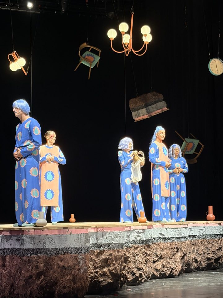Schon beim Betreten des Saals sorgte die Inszenierung für reichlich Gesprächsstoff: Der Blick auf die Bühne war bereits freigegeben, und statt eines geschlossenen Vorhangs erwartete uns eine einstudierte Choreografie, die in einem fortwährenden, rhythmischen Kreislauf dargeboten wurde. Diese zyklischen Bewegungen zogen uns sofort in den Bann und schufen eine dichte Atmosphäre, die das Gefühl eines unausweichlichen Kreislaufs vermittelte. Ein weiterer mutiger Kniff der Regie war die Besetzung der Hauptrolle: Der Dorfrichter Adam wurde von einer Frau gespielt. Diese bewusste Umkehrung der Geschlechterrollen führte im Publikum zunächst zu Erstaunen, eröffnete aber zugleich neue Perspektiven auf zeitlose Themen wie Macht, Schuld und die Kunst der Selbstinszenierung.