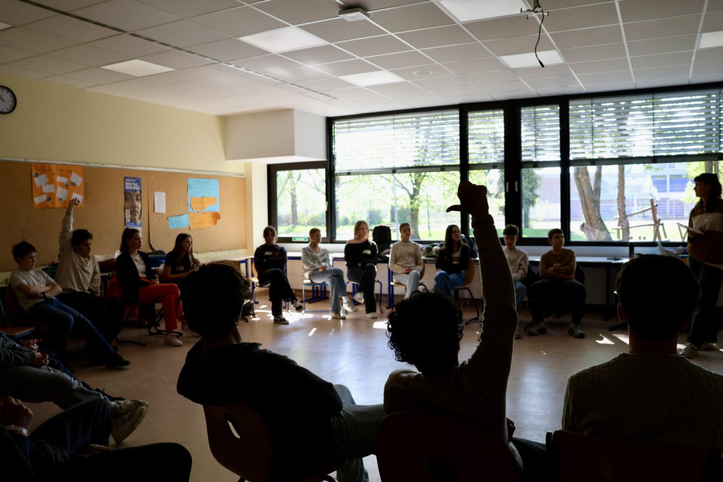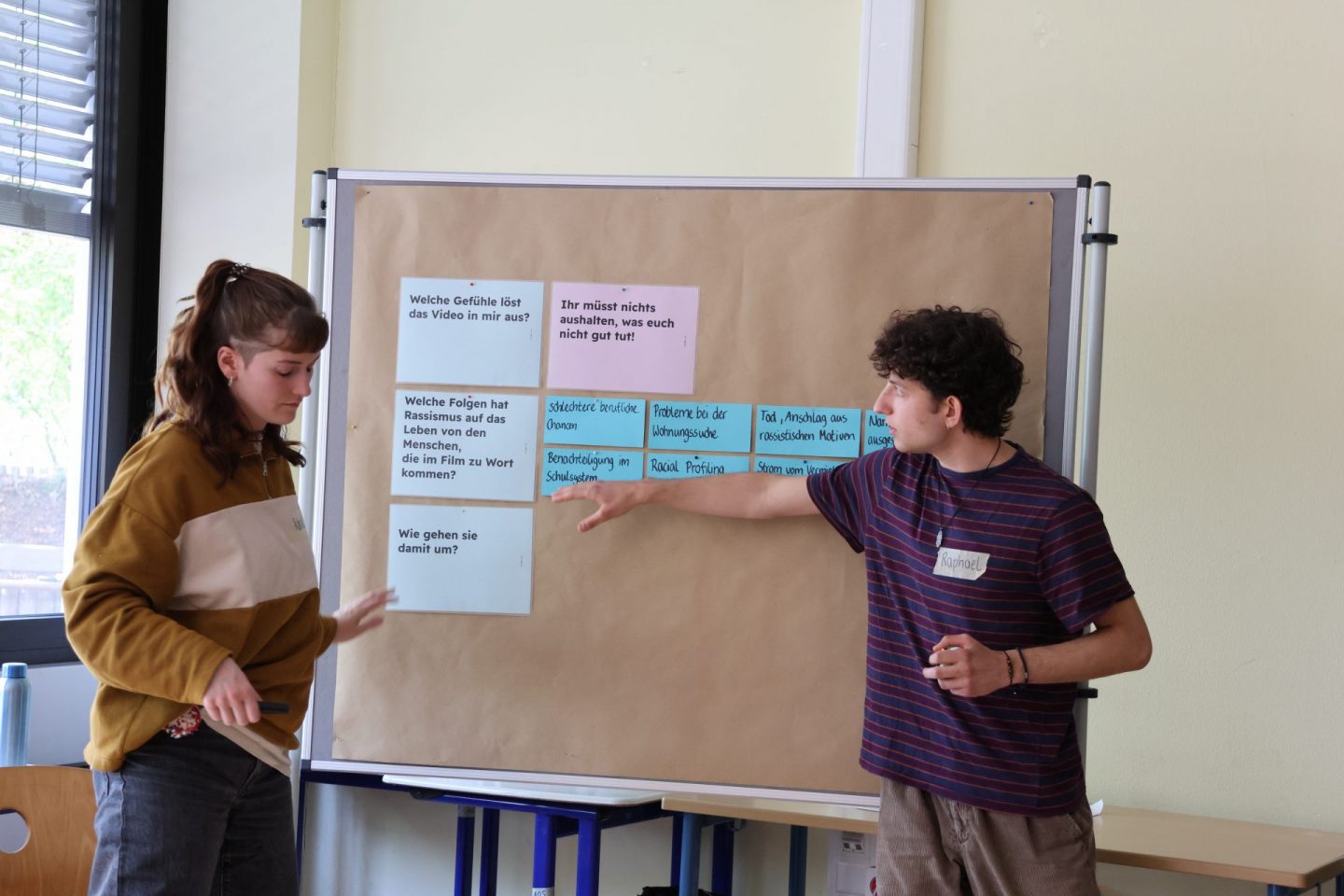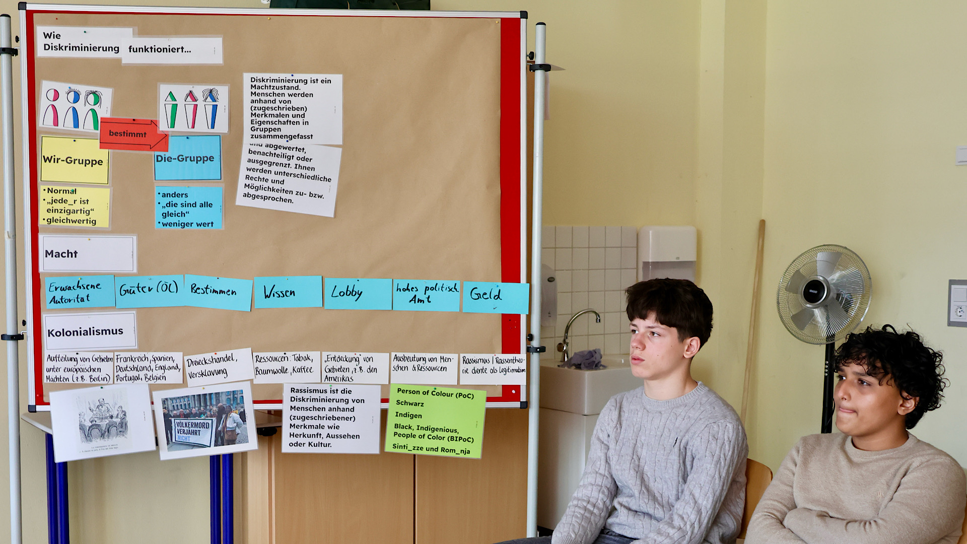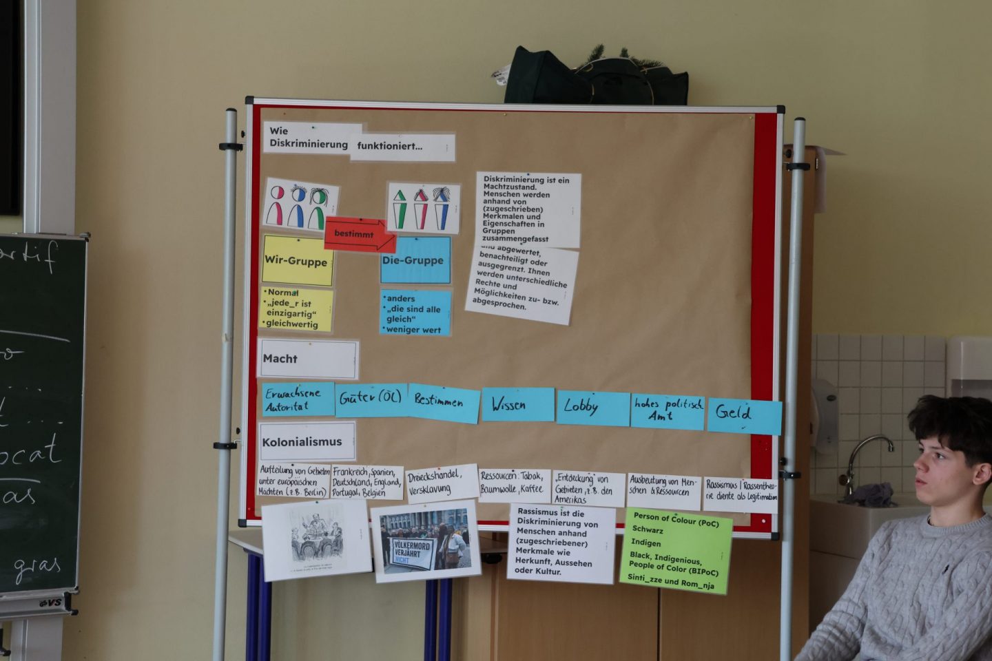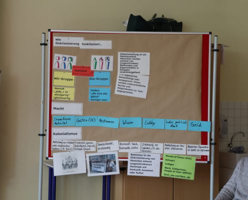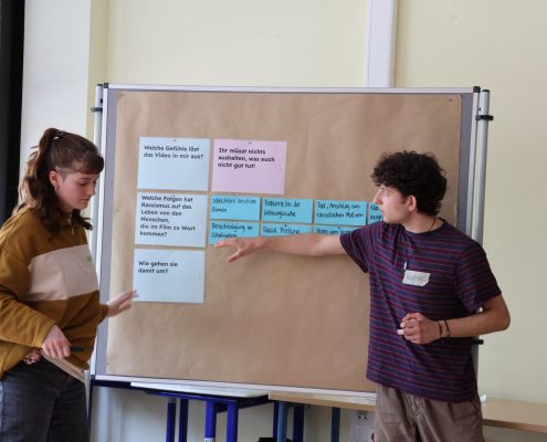 In der ersten Woche nach den Osterferien durfte sich dann die Klassenstufe 8 mit dem Thema Rassismus im Rahmen eines Projekttages beschäftigen. Teamer des Netzwerks für Demokratie und Courage gestalteten den Vormittag mit dem Ziel, den Teilnehmenden zu verdeutlichen, inwiefern Rassismus die Gesellschaft strukturiert und Menschen prägt, dass Rassismus eine lange Geschichte hat, die bis heute fortgeschrieben wird und welche Folgen damit verbunden sind. Den Teilnehmenden wurde Gelegenheit gegeben, sich über ihre Erfahrungen auszutauschen und gemeinsam wurde für Möglichkeiten widerständigen, solidarischen Handelns motiviert.