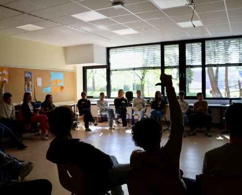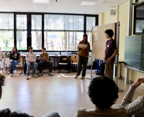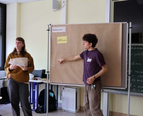 Die Klassenstufe 10 erarbeitete sich bereits im Februar mit Teamern des Team meX der Bundeszentrale für politische Bildung das Thema „Verschwörungstheorien“. Wurde den Schüler:innen zunächst vermittelt, inwiefern Unsicherheit und das Gefühl von Ohnmacht den Boden für den Glauben an Verschwörungstheorien bereiten kann, erarbeiteten Sie in einem zweiten Schritt zentrale Merkmale derselben, auch indem eigene Verschwörungstheorien konzipiert werden sollten, um deren strategisches Vorgehen zu verdeutlichen. Zum Abschluss wurden Handlungsmöglichkeiten gegen Verschwörungstheorien vermittelt, um die Jugendlichen in ihrer Handlungsfähigkeit zu bestärken.